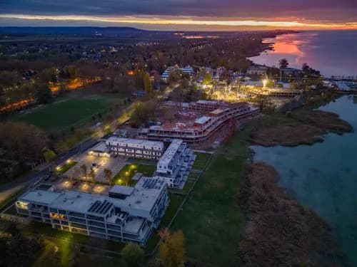 a lakások ára 5 %, az üdülőké 27 % áfát tartalmaz. Az üdülők a nyugati épületrészben helyezkednek el.