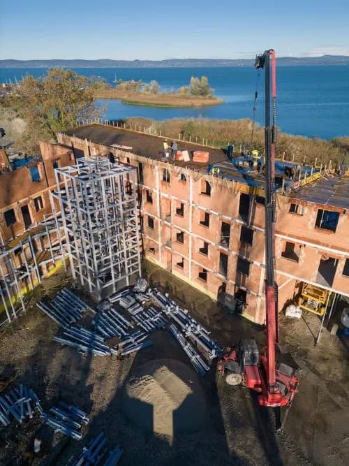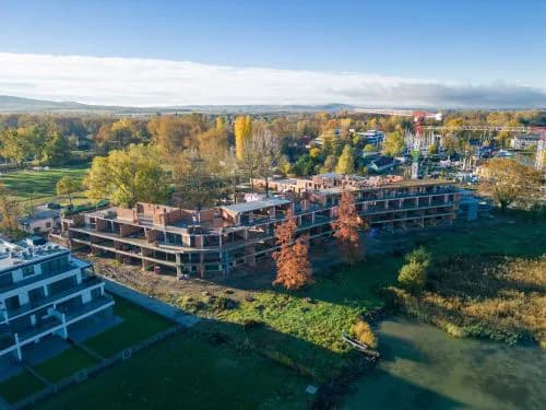 60 lakás, 25 üdülő és 2 kereskedelmi egység kerül megvalósításra. 36 - 108 m2 közötti lakások, üdülők, garzontól egészen a 4 hálószobásig! A lakások, üdülők akár emelt szerkezetkész állapotban (betonozva, vakolt falakkal) is értékesítjük, ilyenkor a vevő saját magának befejezheti.